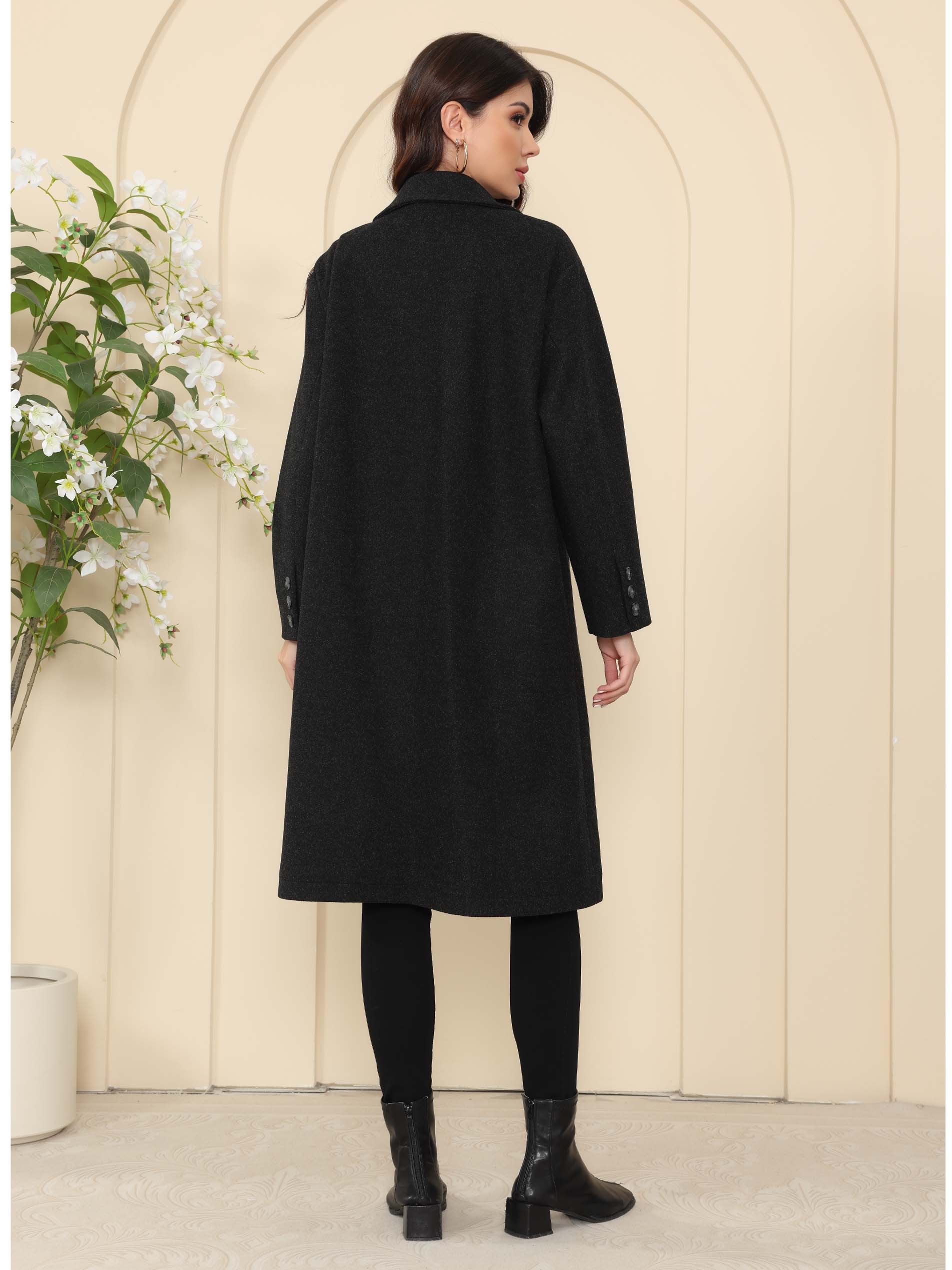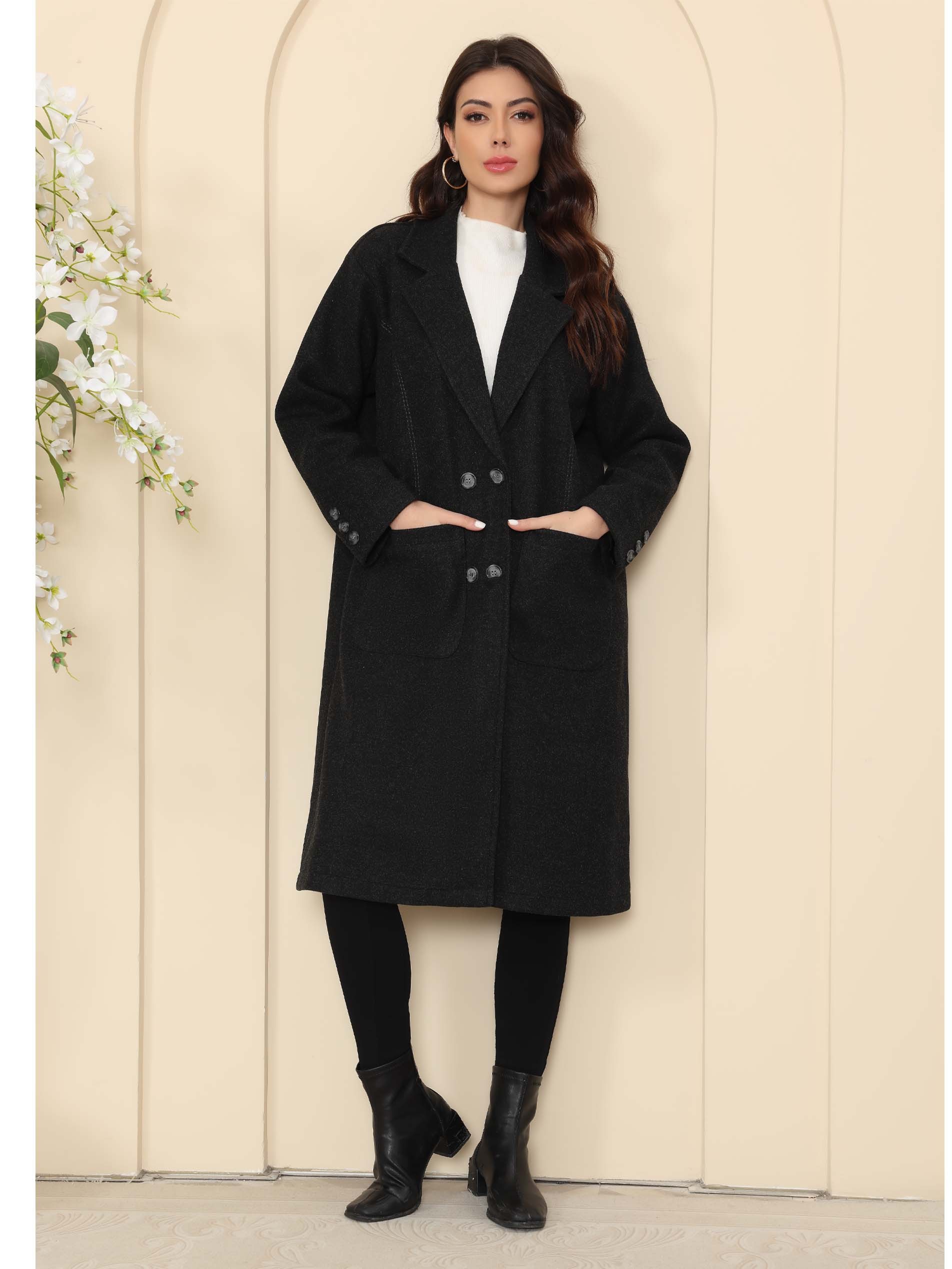 عباءة سوداء بقصة جاكيت مخملي، مصممة بأكمام طويلة لاطلالة شتوية مميزة.