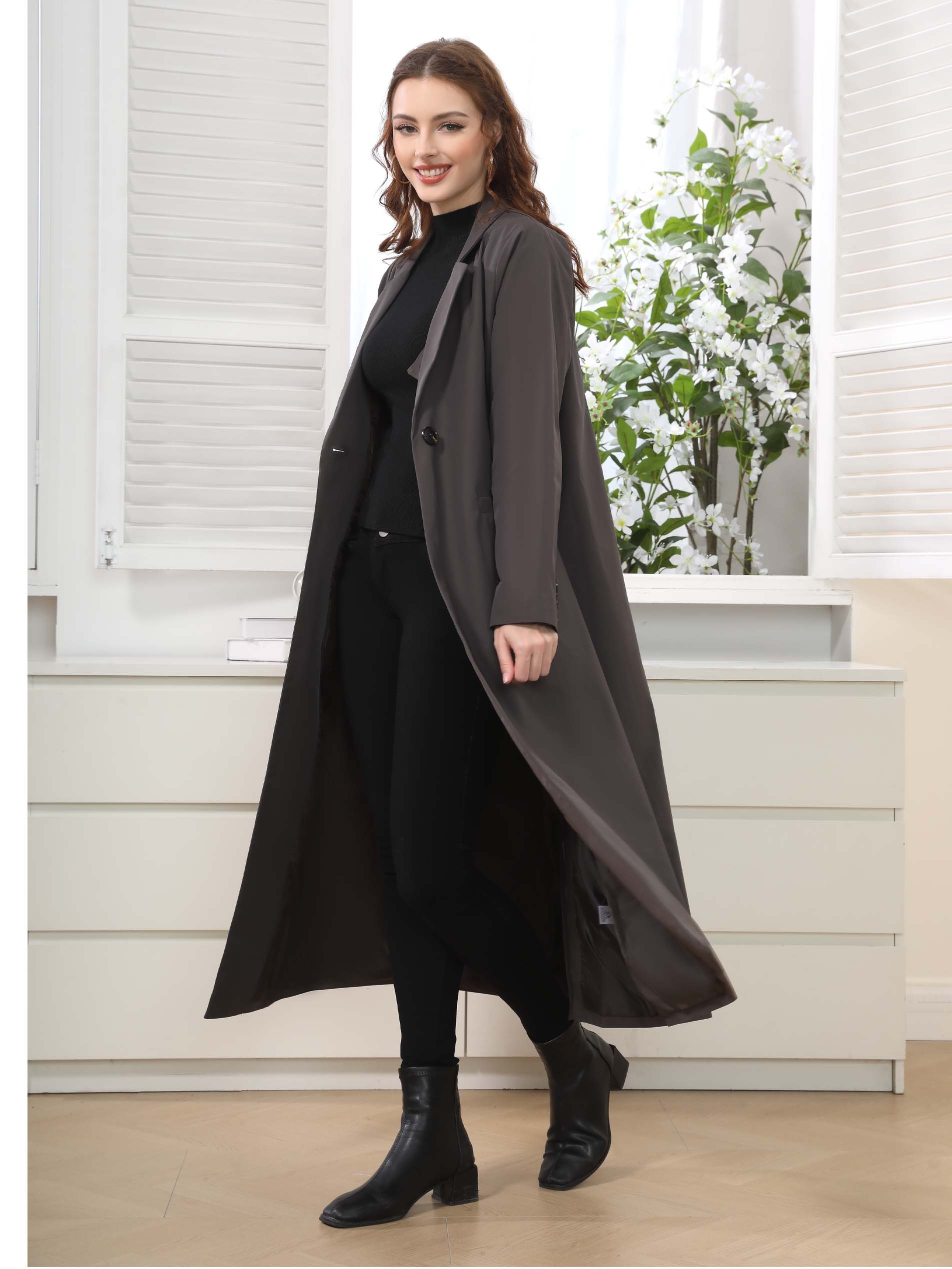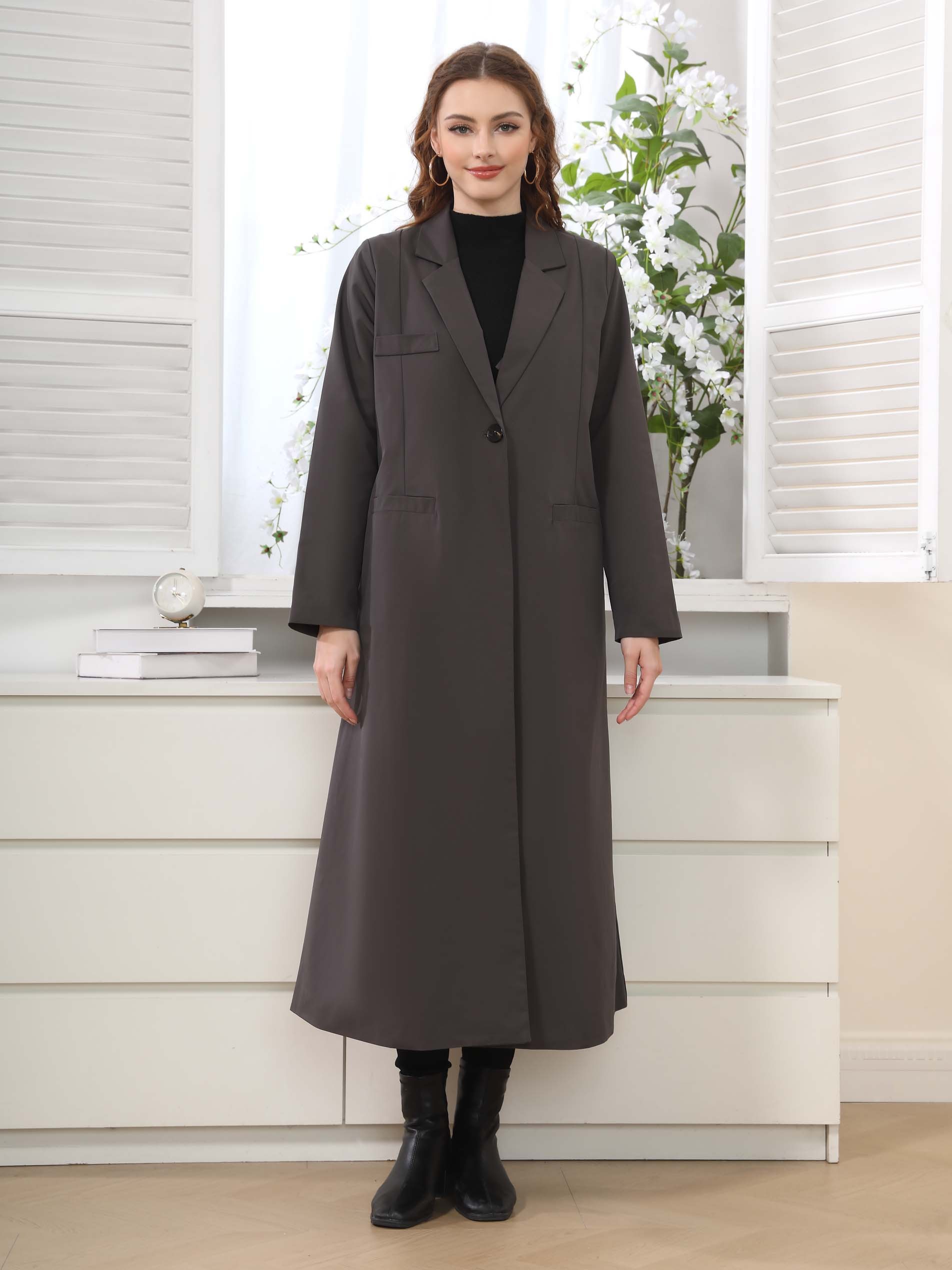 جاكيت أنيق من القطن باللون الأسود، بسيط وعملي، مصمم بأكمام طويلة لاطلالة شتوية جذابة!