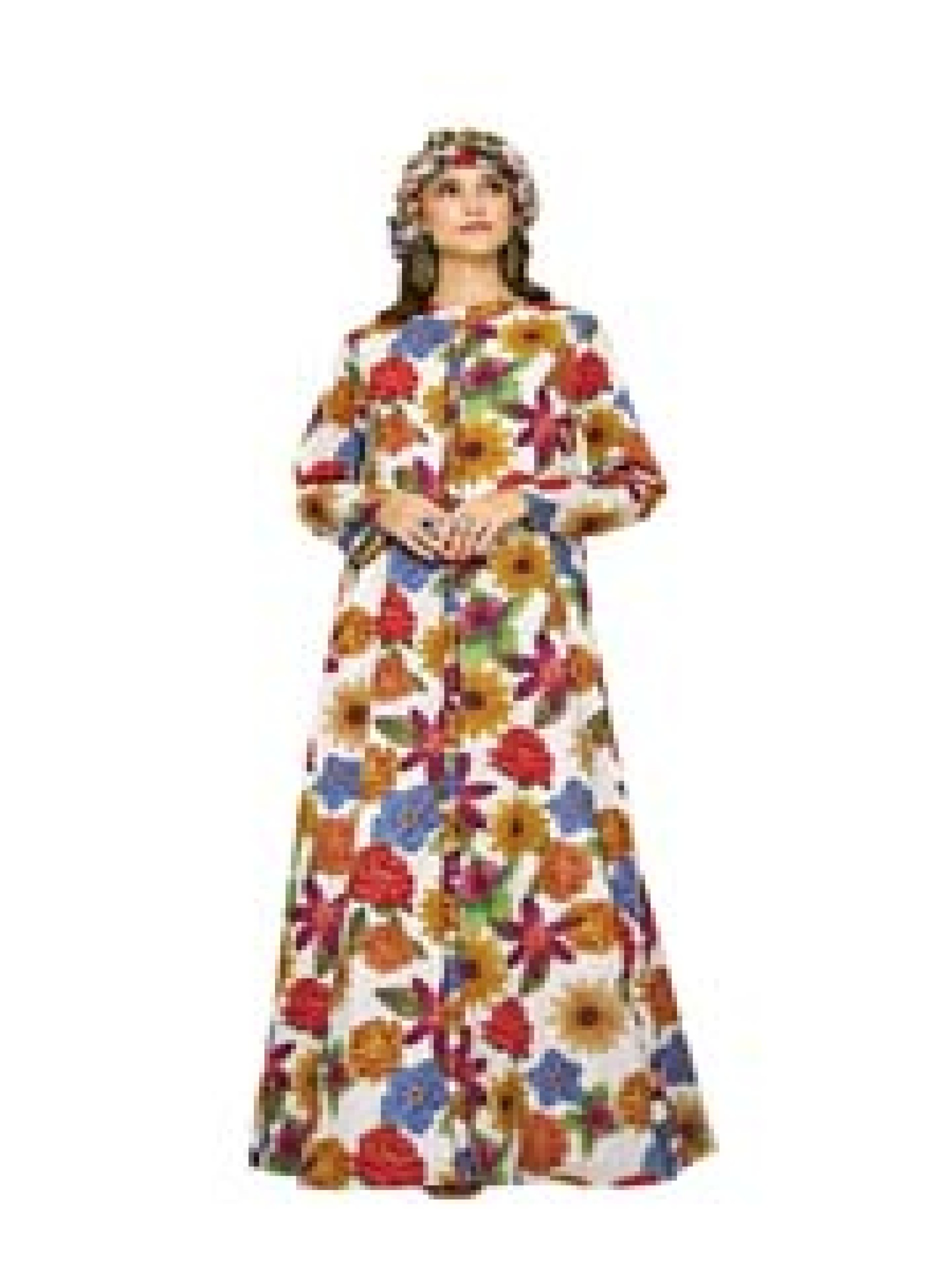 هذه الجلابية ذات القَصّة المُتَوَسِّعة مزينة بطبعة زهور متعددة الألوان التي تنتشر عبر القماش القطني، مما يخلق تصميمًا مفعمًا بالحيوية والجاذبية. تضيف تفاصيل الدانتيل والعمل بالخرز لمسة مرحة، بينما يضمن التصميم المنساب الراحة وسهولة الحركة. مثالية للمناسبات غير الرسمية، تضفي هذه القطعة أجواء صيفية مبهجة على أي خزانة ملابس.