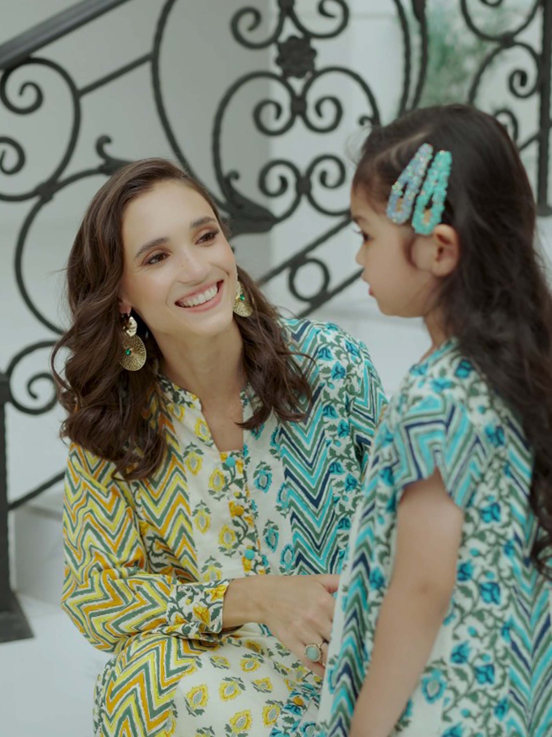 تتميز هذه الجلابية بالقَصّة المُتَوَسِّعة المصنوعة من القطن بتصميم مرح ومفعم بالحيوية مع خطوط مائلة جريئة، وزهور رقيقة، وأنماط هندسية. يخلق المزيج الساطع من الأصفر والأزرق والأخضر مظهرًا مبتهجًا وحيويًا، مثاليًا للرحلات الصيفية غير الرسمية. يضمن قماشها القابل للتنفس الراحة، مما يجعلها خيارًا رائعًا للأطفال النشيطين.