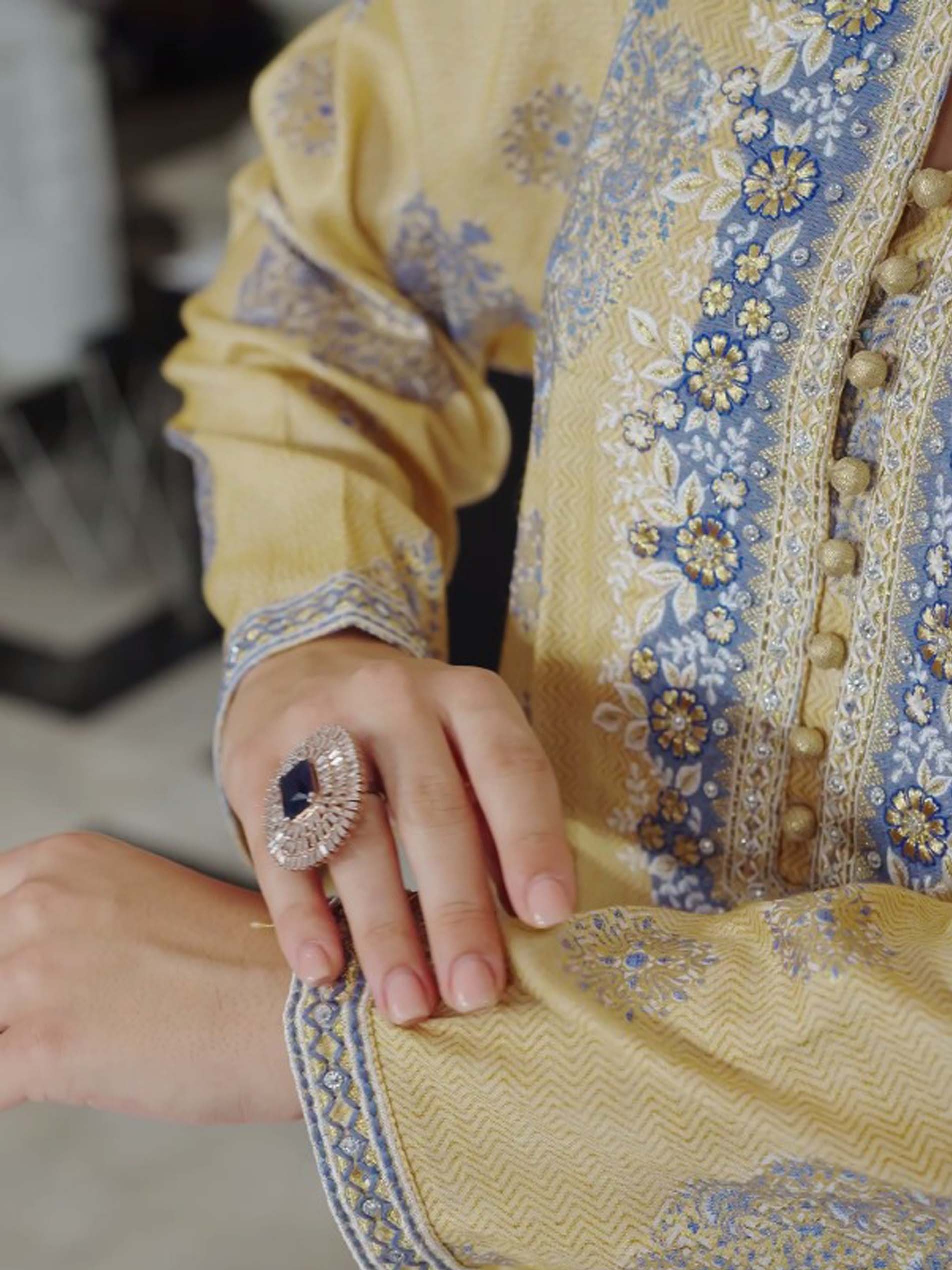 تتميز هذه الجلابية بالقَصّة المُتَوَسِّعة بطبعة فويل رائعة بألوان دافئة وترابية، مع تطريز دقيق وأزرار على طول المنتصف، مما يضيف تفاصيل معقدة ولمسة لامعة. مصنوعة من القطن القابل للتنفس، تجمع بين الأناقة والراحة، مما يجعلها مثالية لأيام الصيف الدافئة، خاصة خلال رمضان. التصميم الفريد يجمع بين الجمال والتقاليد لمظهر مميز.