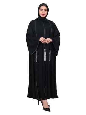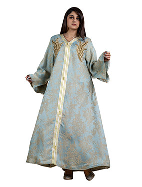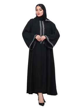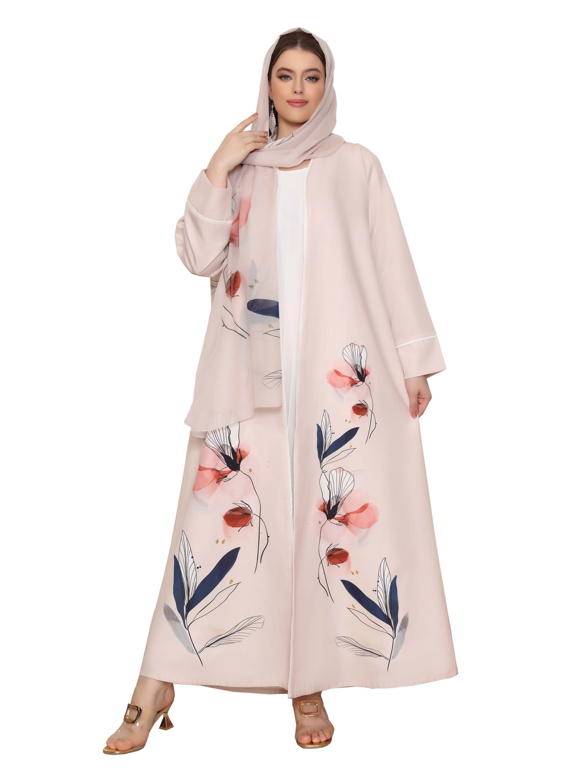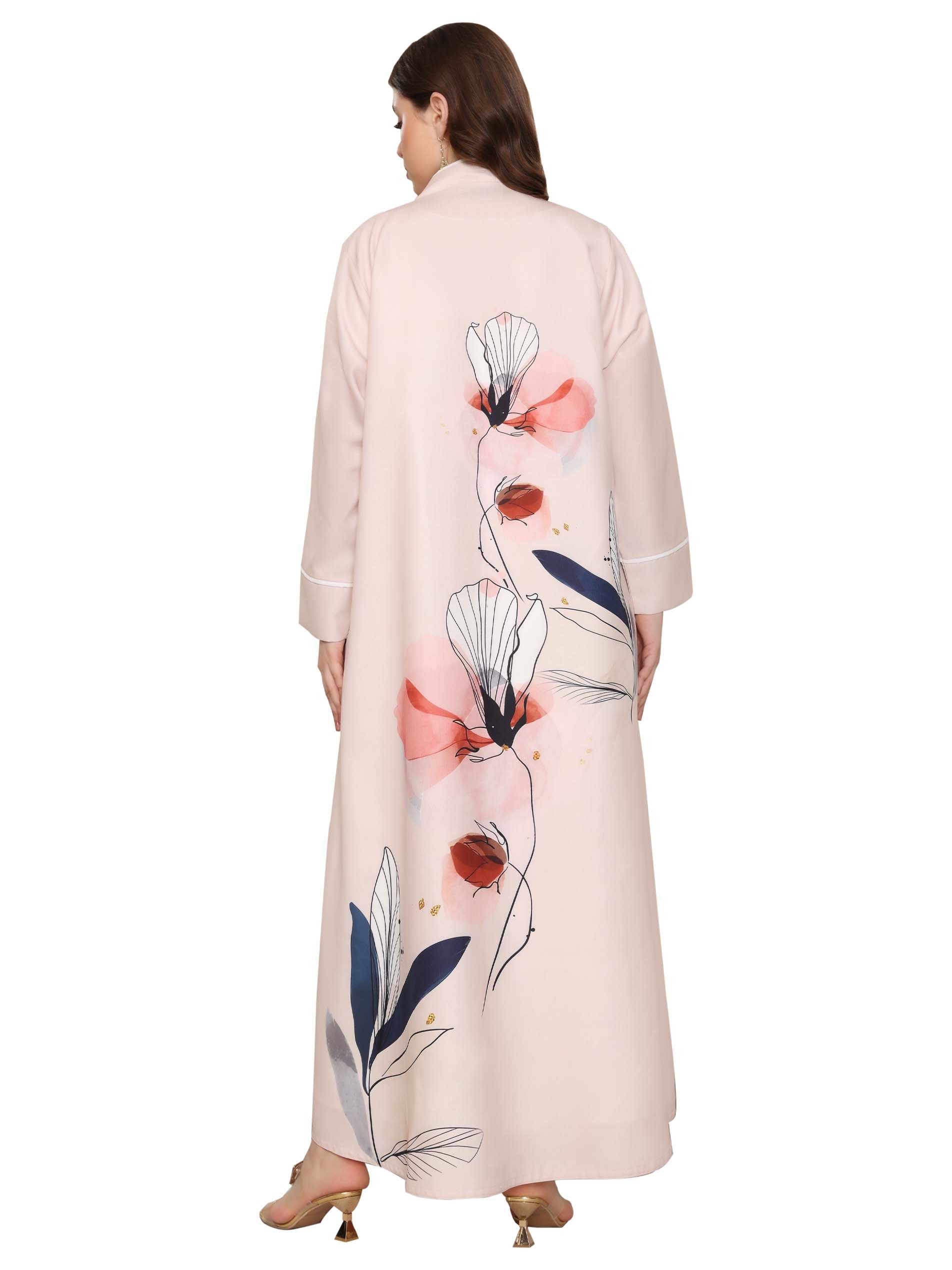 عباية من الكتان مكونة من قطعتين ومصممة بنقوشات الأزهار لتكمل أناقتك.