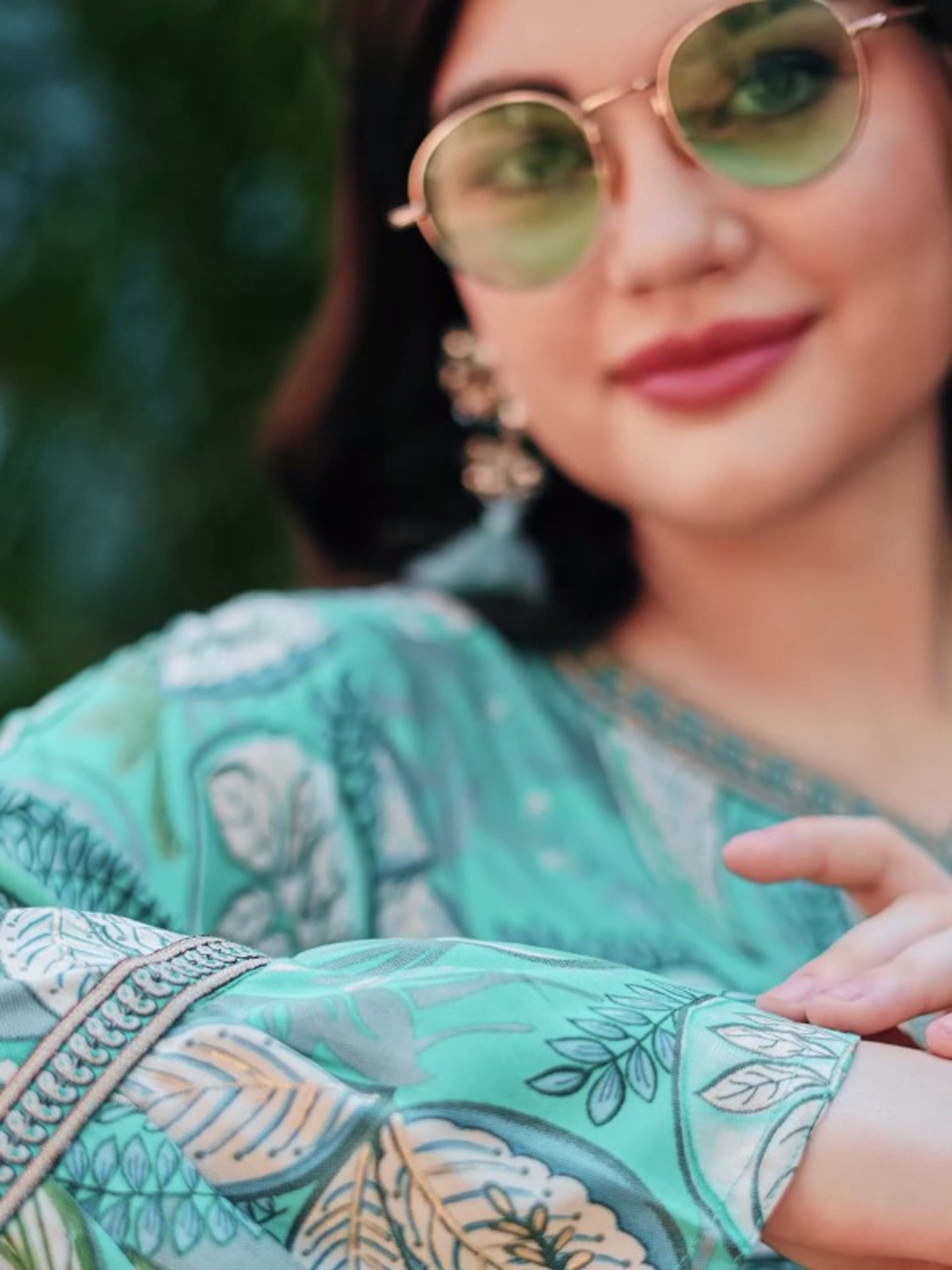 اذا كنتي من محبي اللون الأزرق، هذه الجلابية يجب أن تكون جزء من خزانتك...مصممة بنقشة أوراق الشجر باللون الرمادي مع أكمام طويلة وتطريز رائع على الصدر.