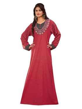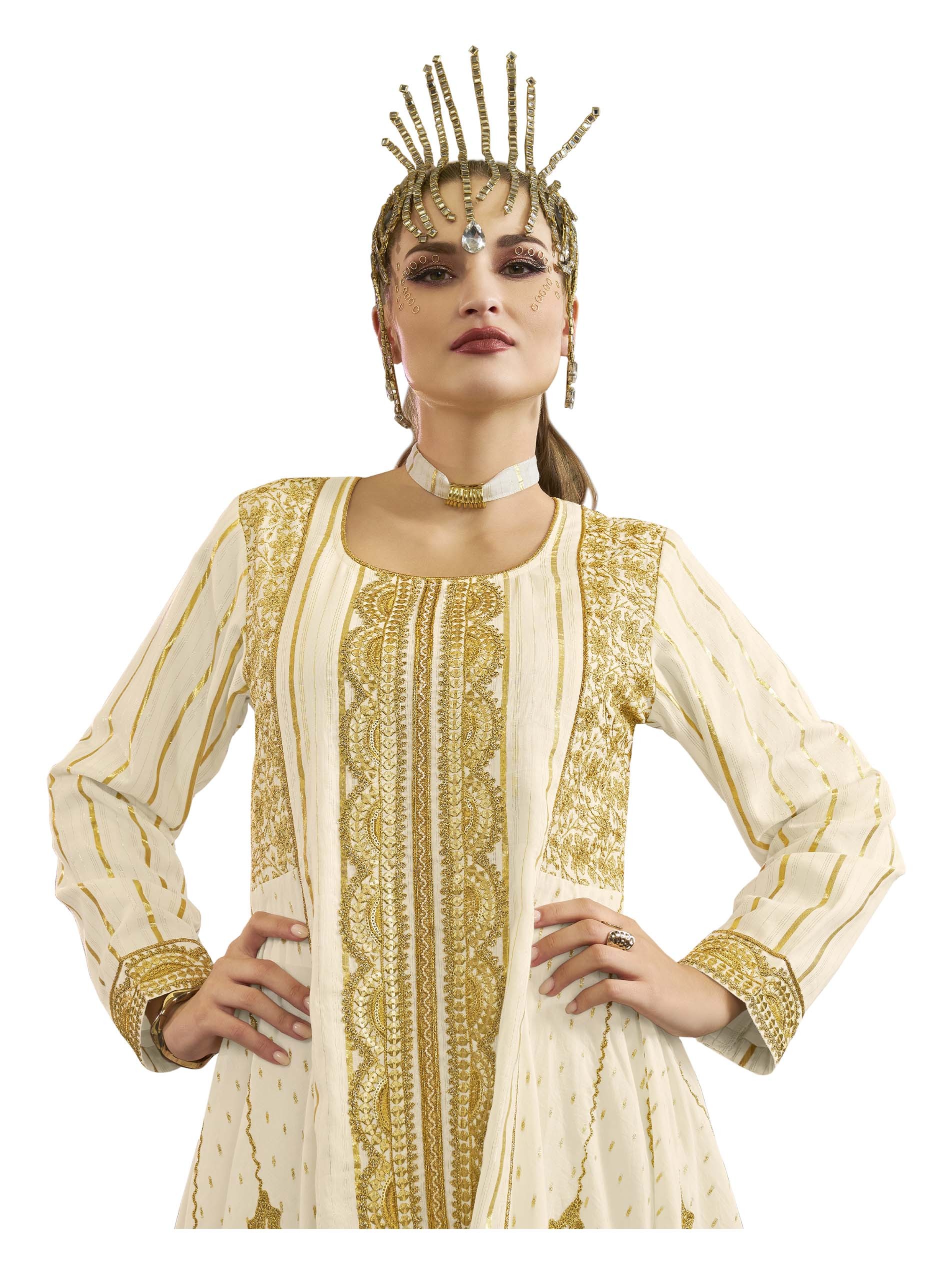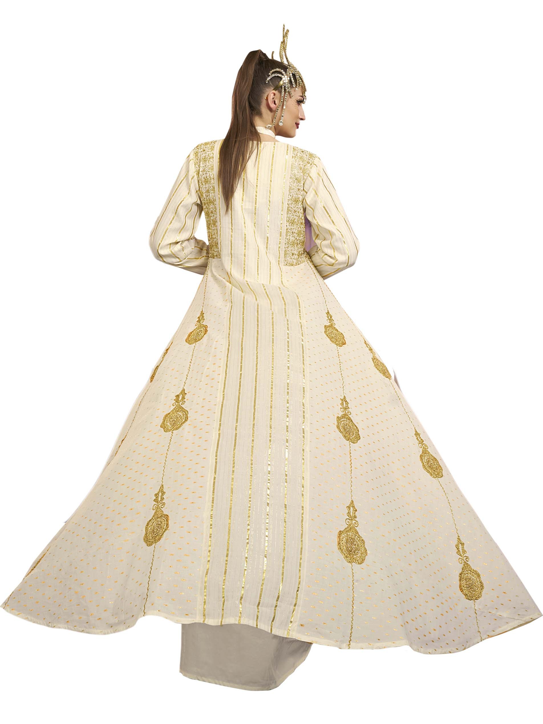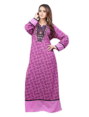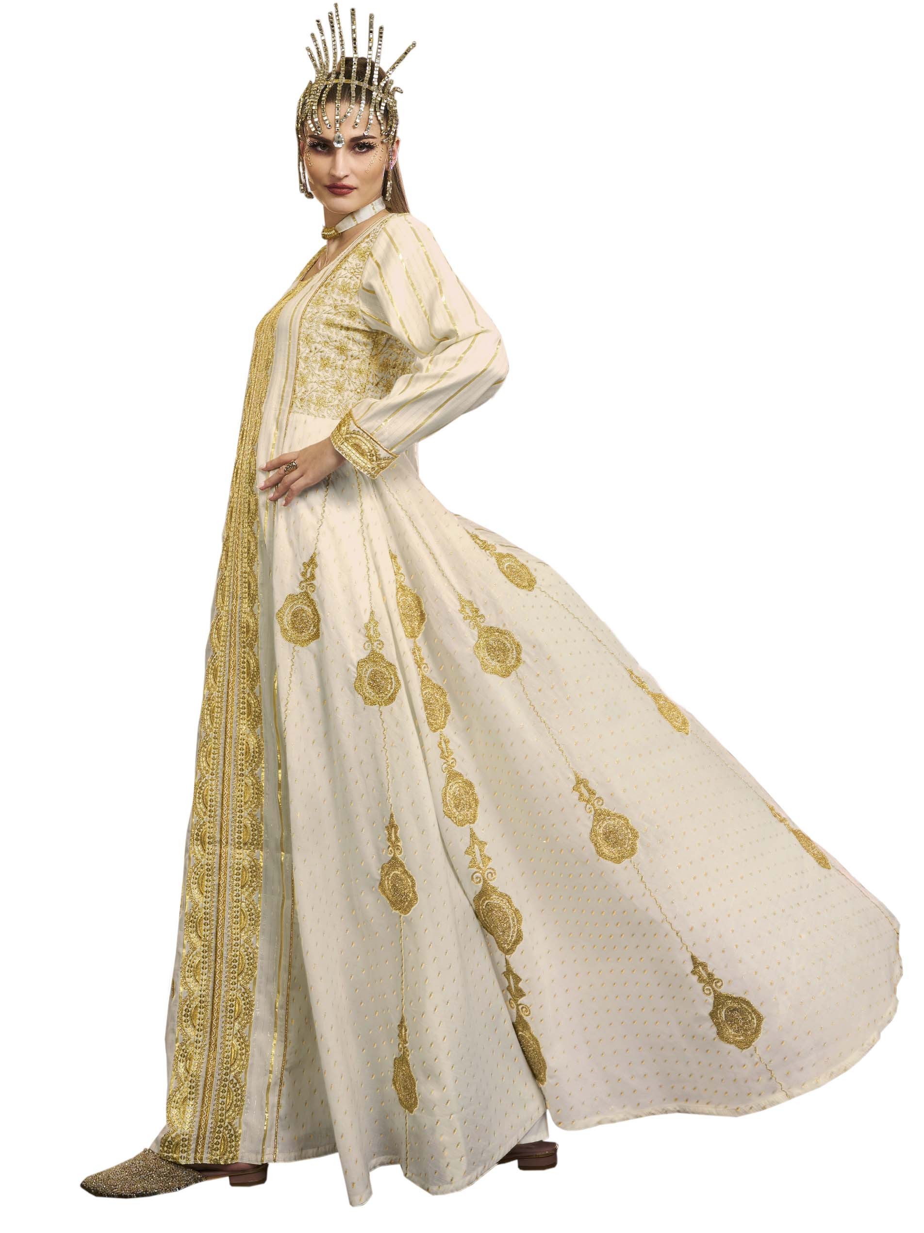 تألقي باطلالة تأسر القلوب مع هذه الجلابية الملكية البيضاء، مصممة من القطن بتطريز ذهبي فاخر.