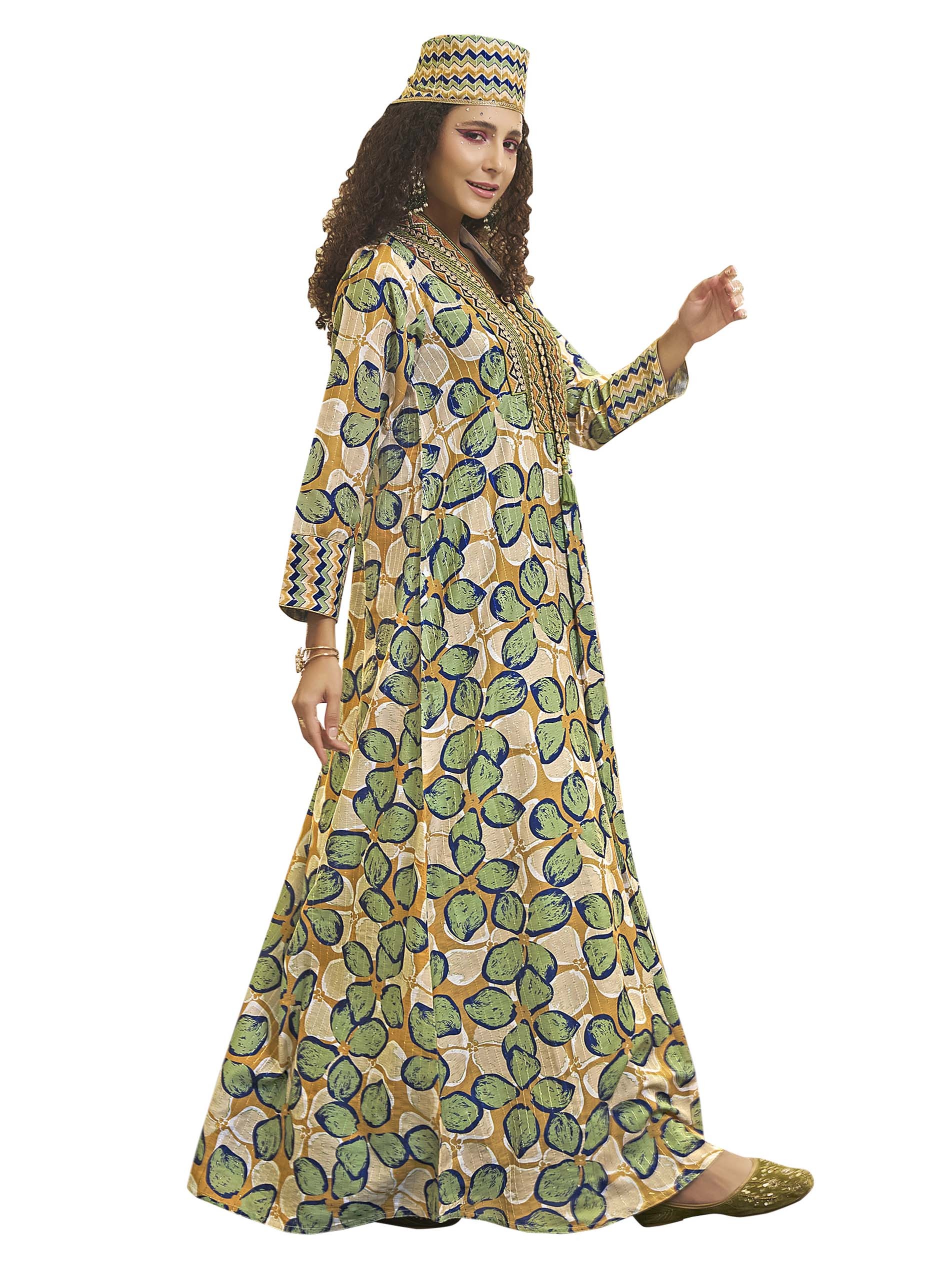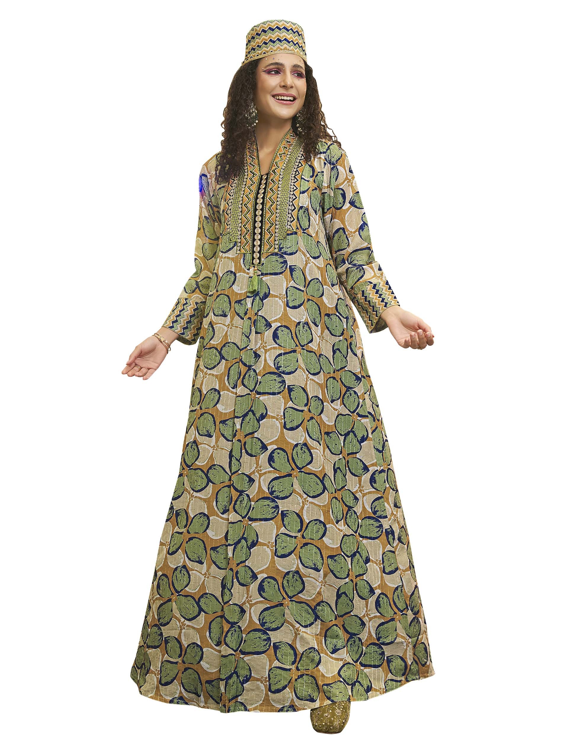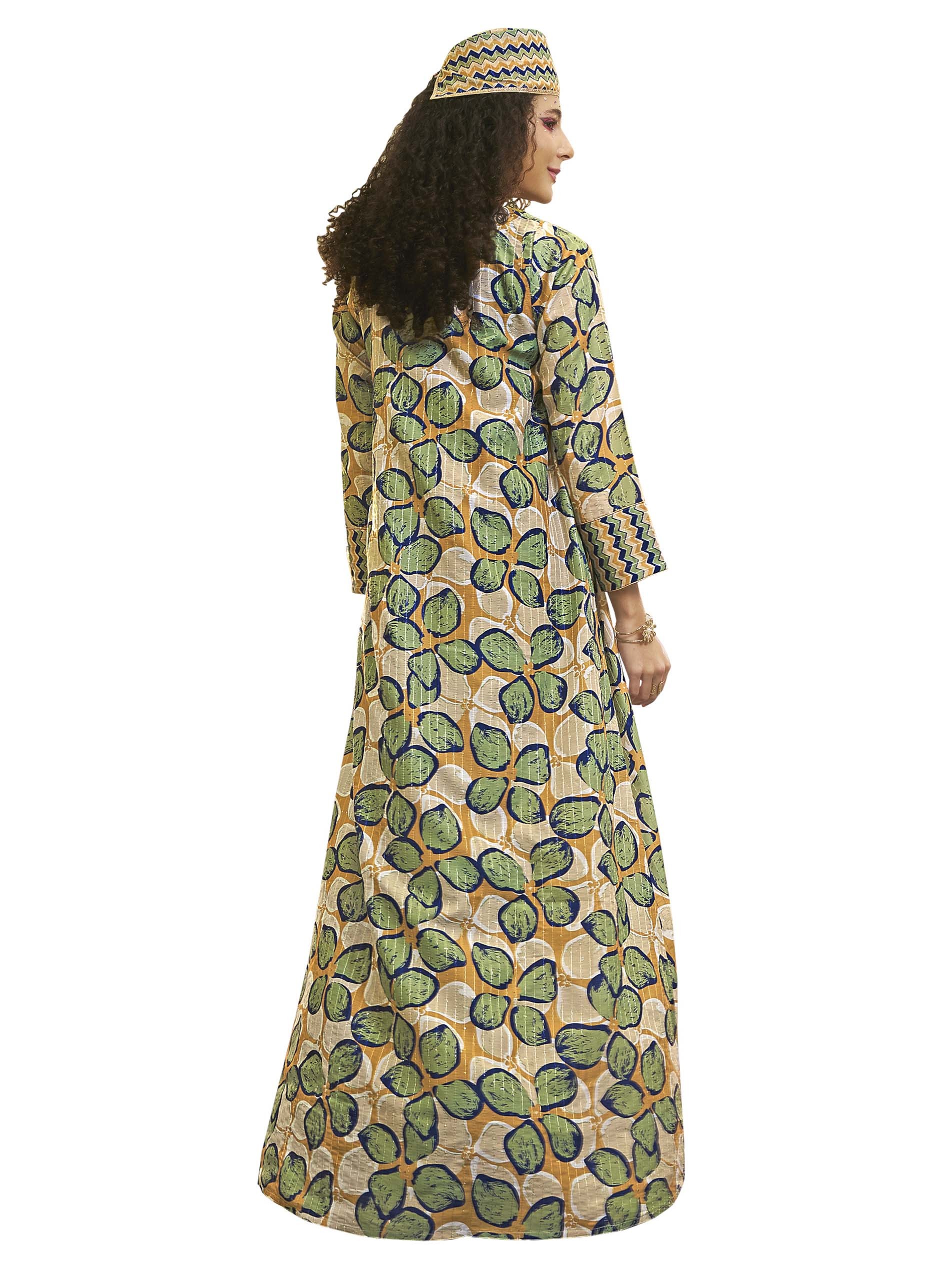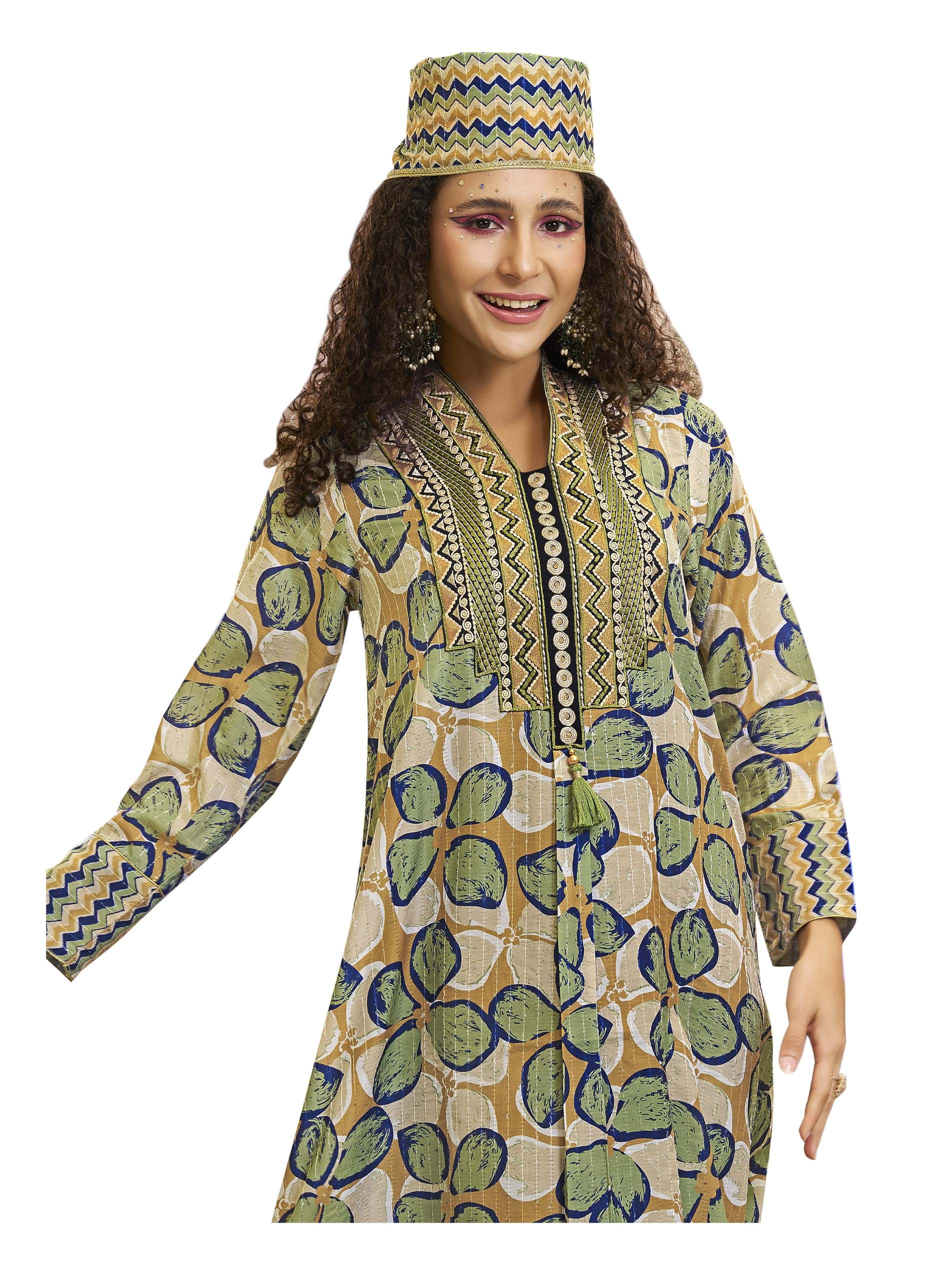 هذه القطعة الفنية يجب أن تكون جزء من خزانتك، فهي مصنوعة من القطن الناعم باللون الأخضر والبني والرمادي، ومزودة بنقشة أوراق الشجر مع أكمام طويلة وتطريز على الصدر.