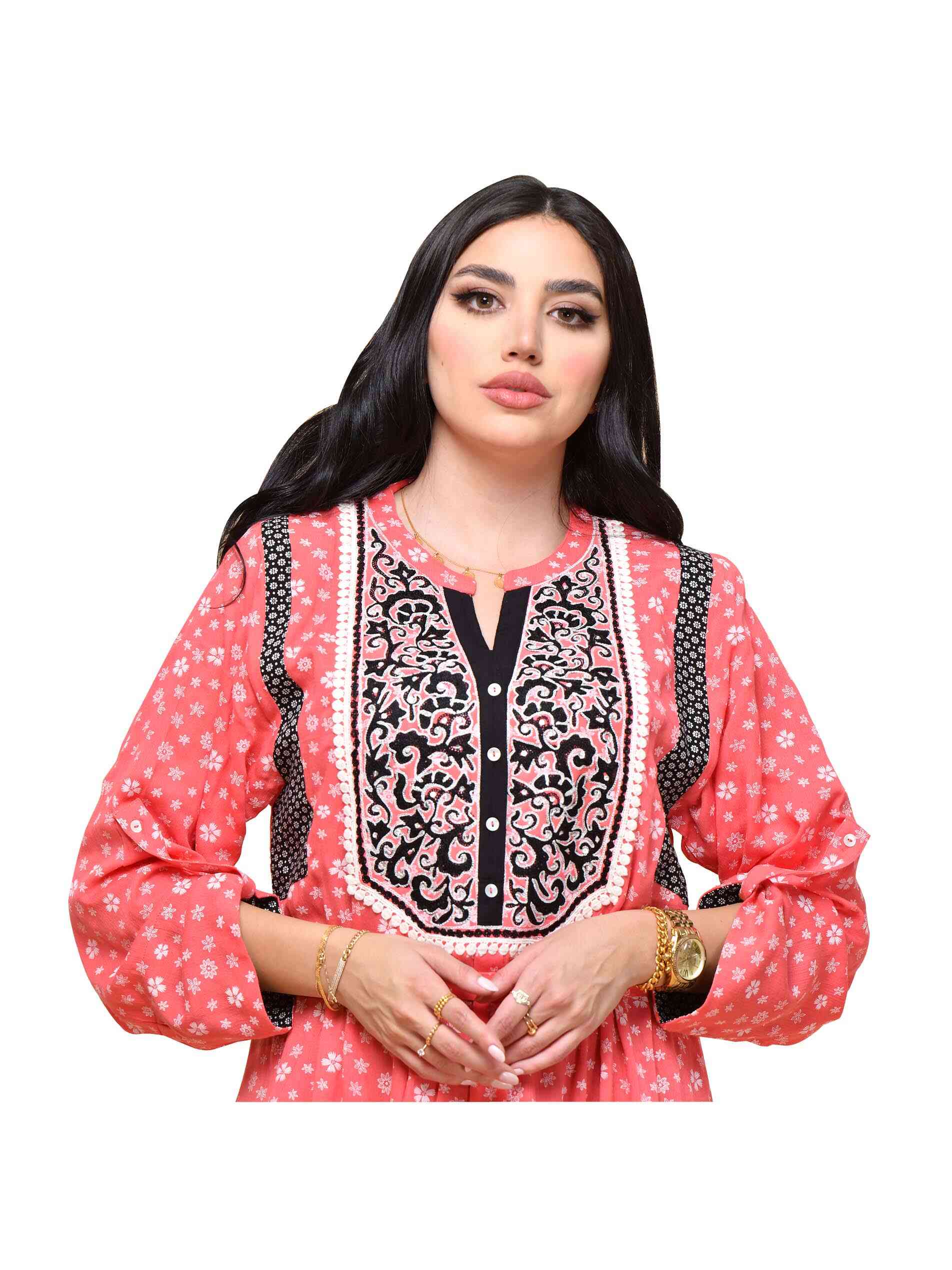 Model Number: 19242Colour: PinkFull SleevesNeck: VDaraat/Kaftan