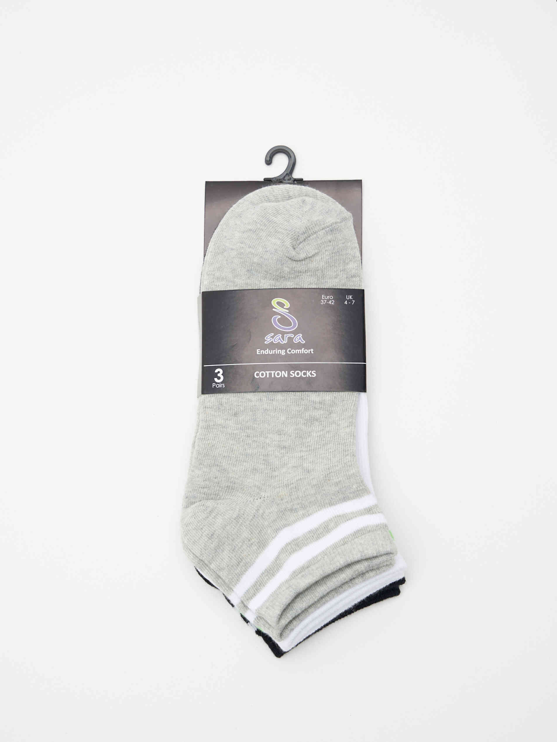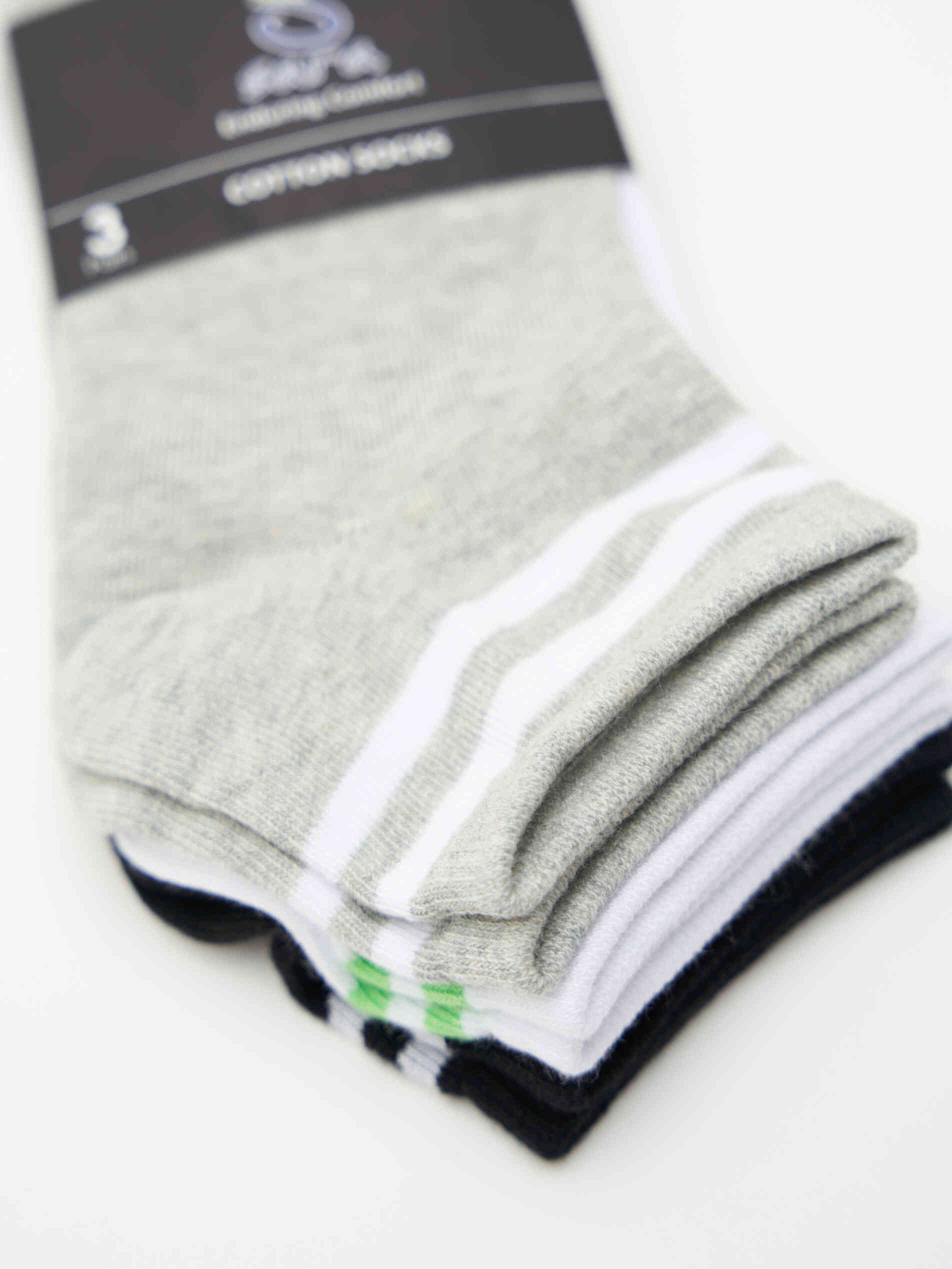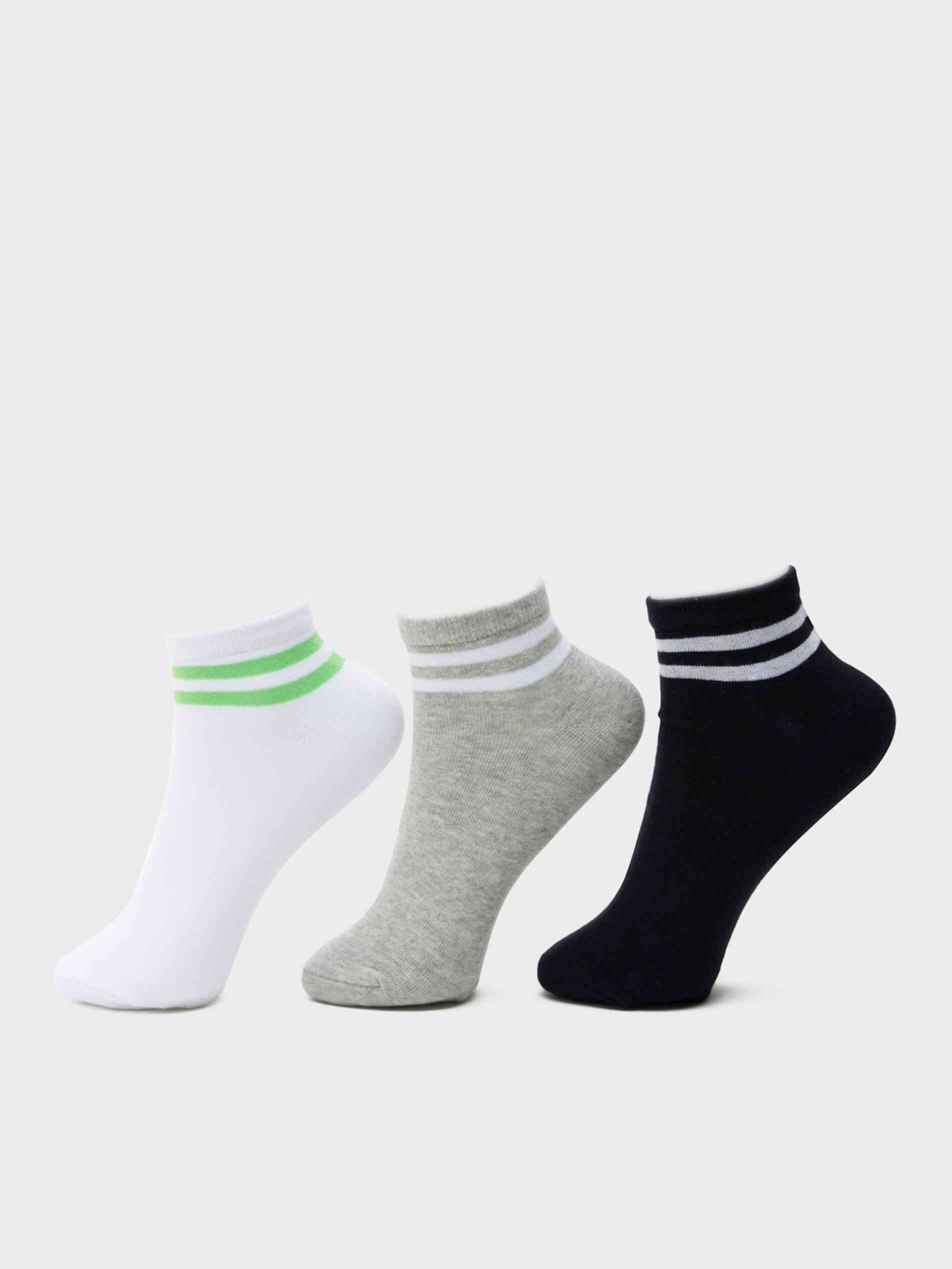Breathable cotton light weight ankle length socks with contrast stripe border. (Pack of 3)