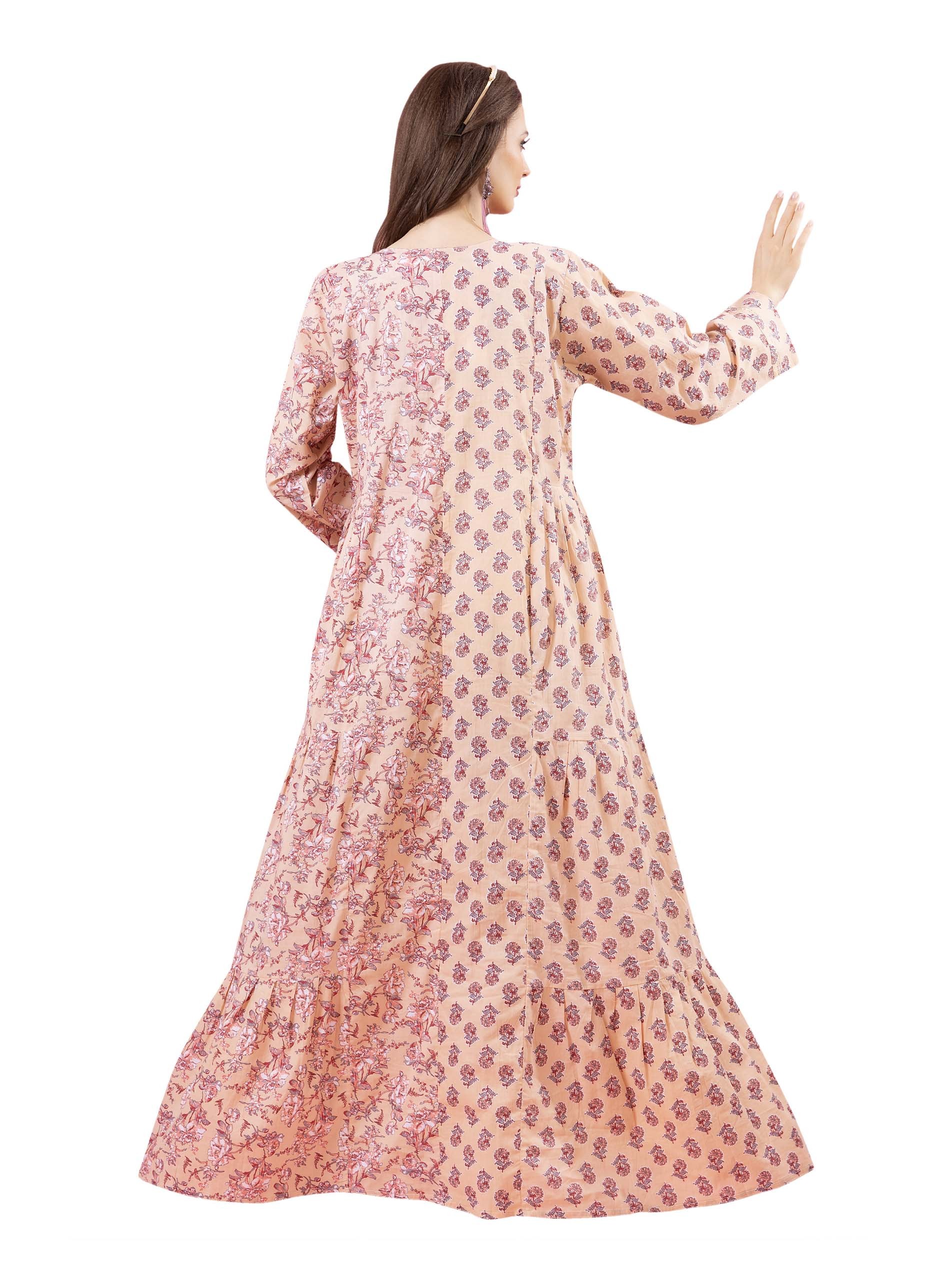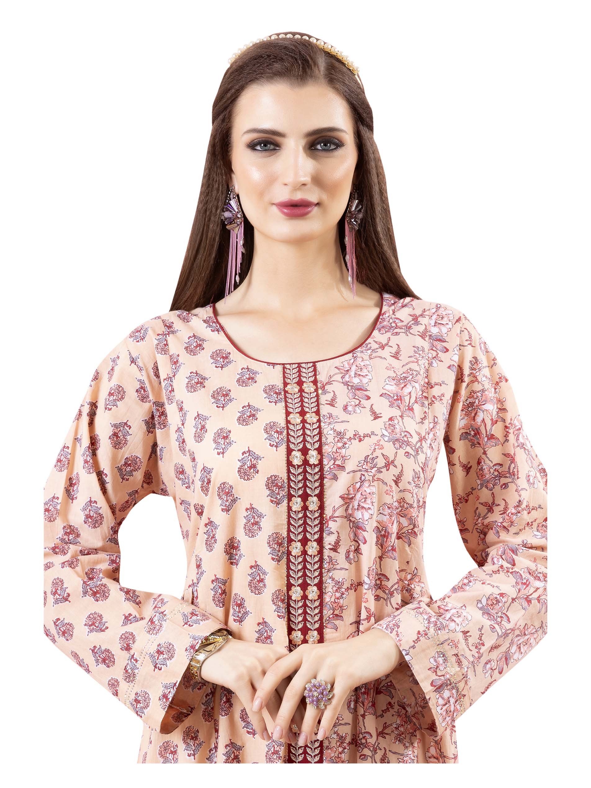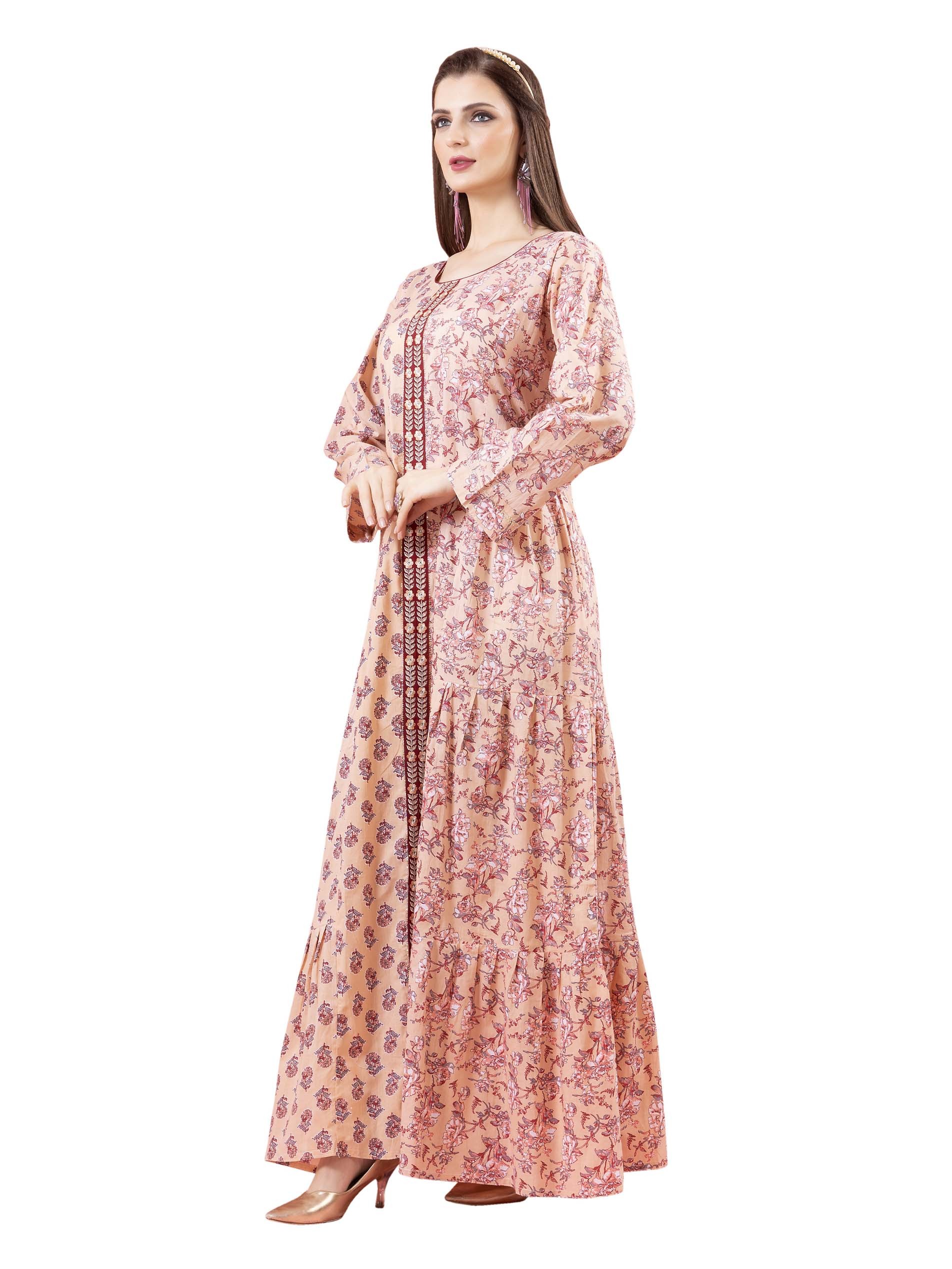 Rose printed A-line jalabiya, designed with distincrive diverisified patterns on both sides.