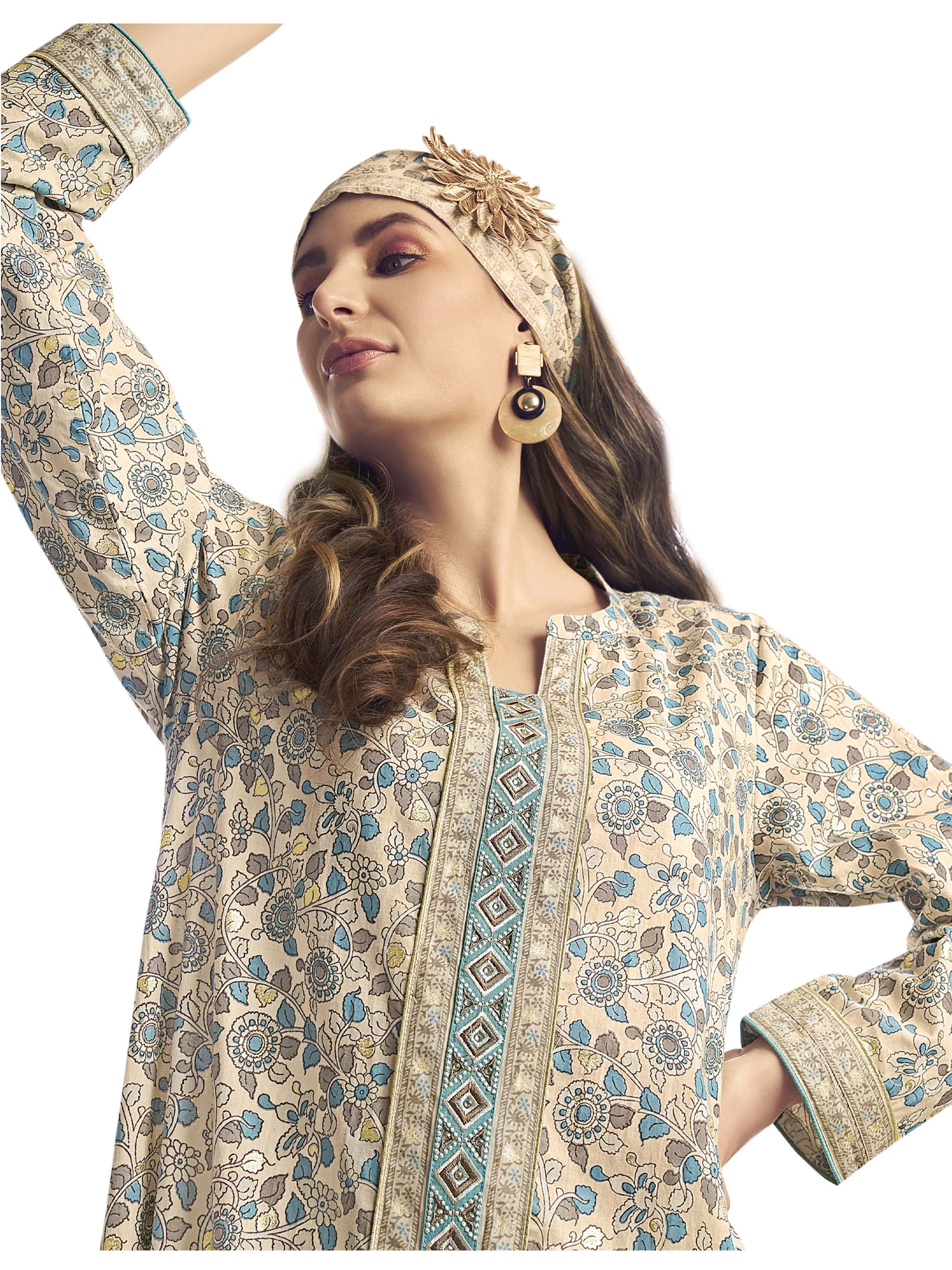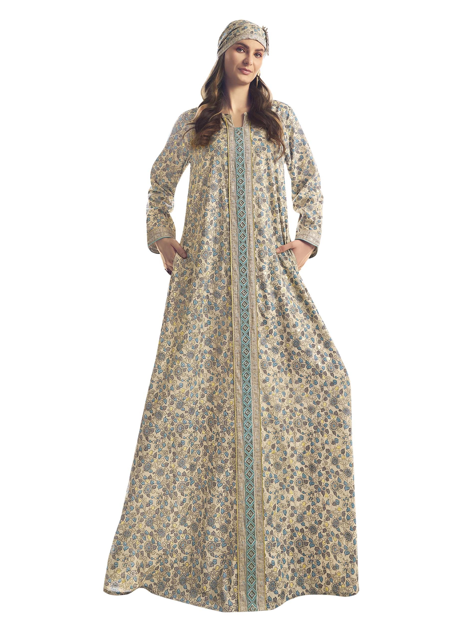 Shine in our floral cambric cotton jalabiya that comes in blue and gray colours.