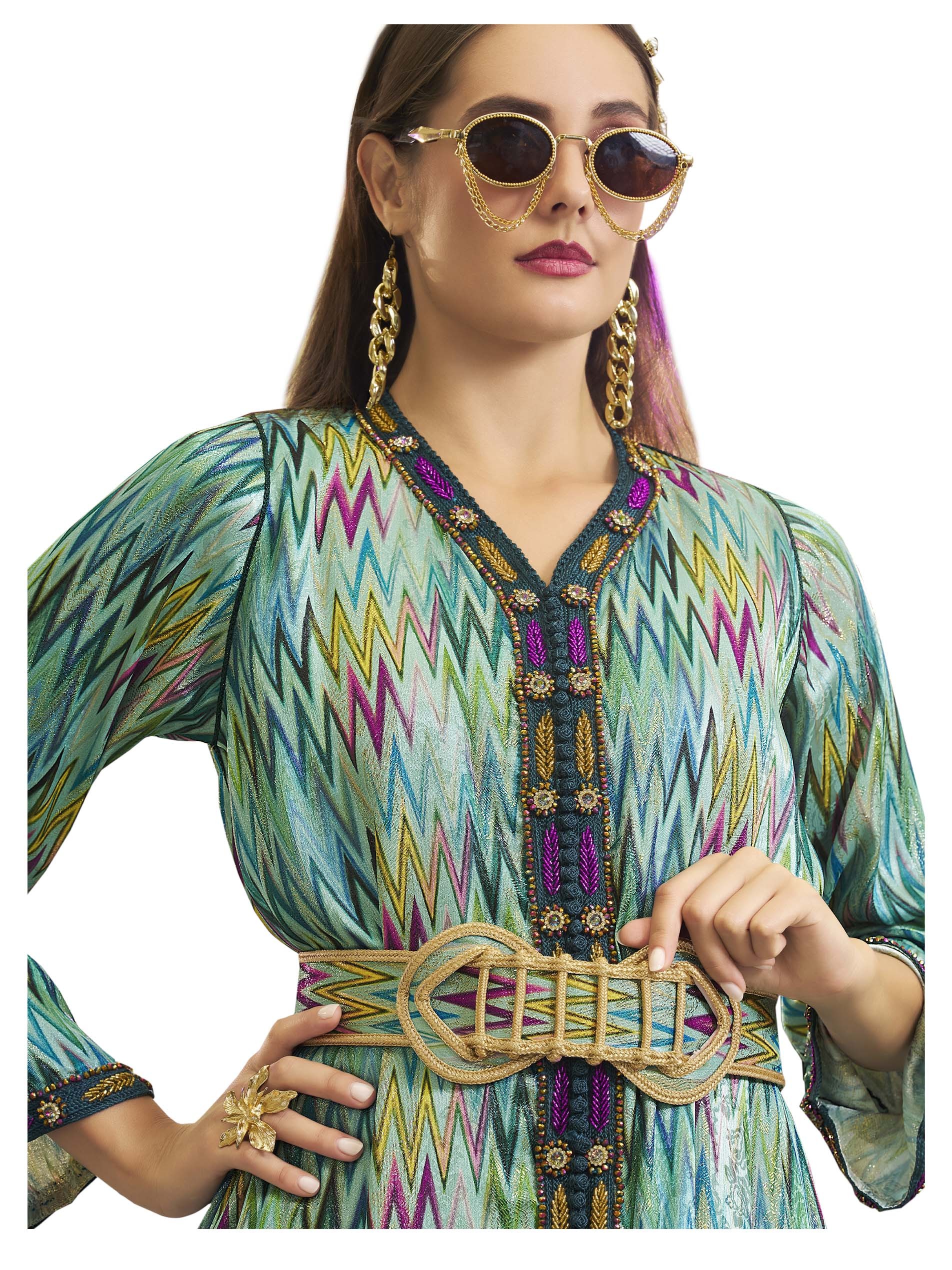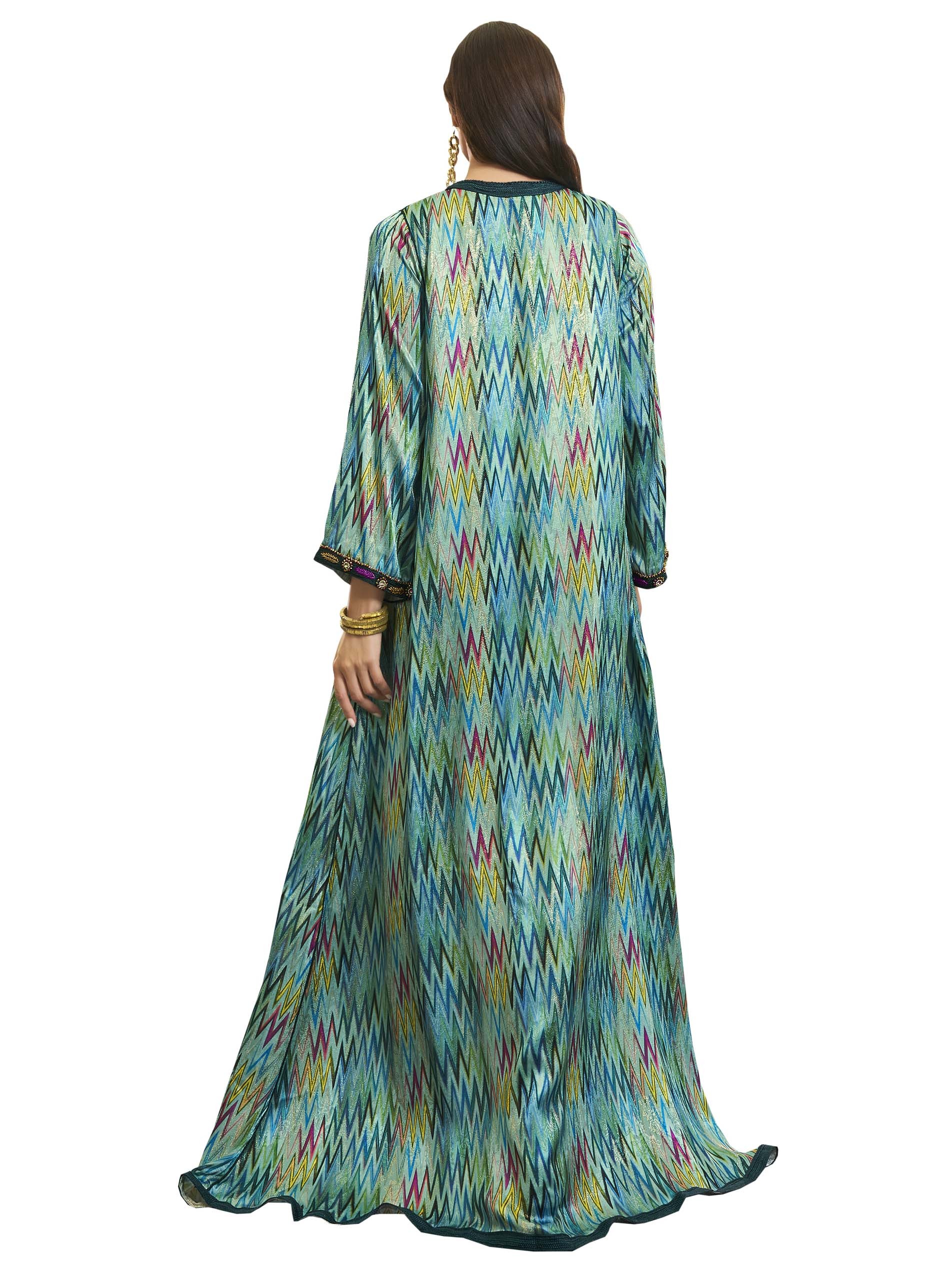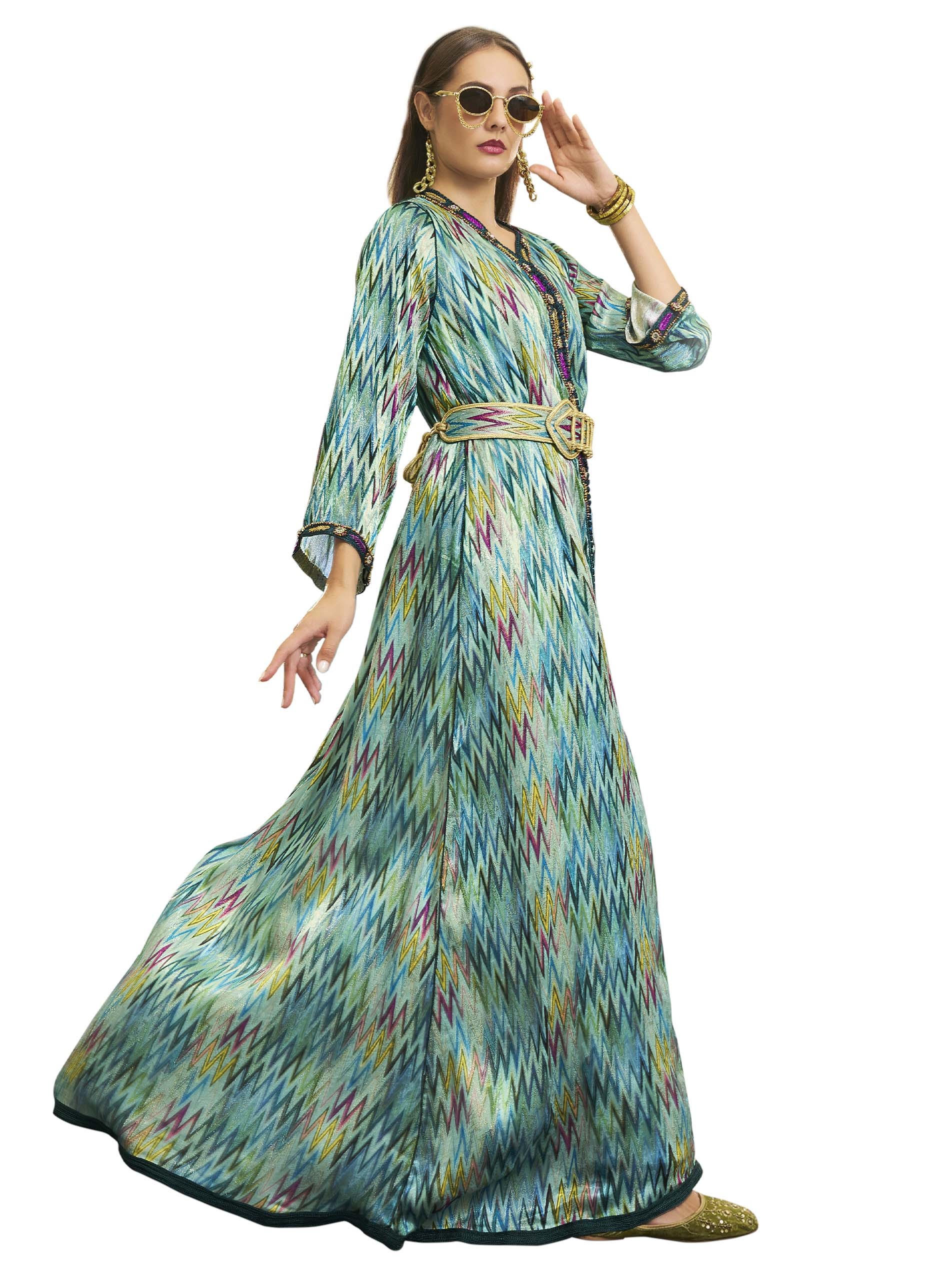 If you love uniqueness, this cheerful cotton jalabiya must be your choice, featuring chest embroidery and elegant belt.
